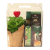 המארז בתמונה כולל בתוכו בקבוק יין משובח, בקבוק שמן זית, דבש לחיץ, שוקולד מפנק וסוקולנט עם כלי קרמיקה
